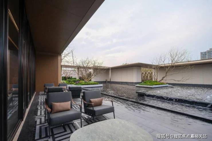· 四重隐境水院:风雅会客厅出来经过风雨连廊区连接的就是项目售楼处,经过风雨连廊区的时候会看到项目打造的 约650平米纯净自然的水域界面,楼台与水瀑交融,享受回家的仪式感。 通透的艺术廊道,彰显了以人为本的设计理念,既能遮风挡雨,也可以从容漫步,整个无界水院采用了水系堆叠,层层变换,错落有致,美不胜收!