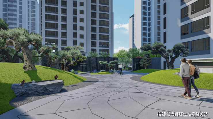 宽约50米的小区入口门头,辅以铝板进行点缀,恢弘大气,结合迎宾大堂、迎宾庭院、流水景墙等五重归家序列,从第一步起便营造归家仪式感。