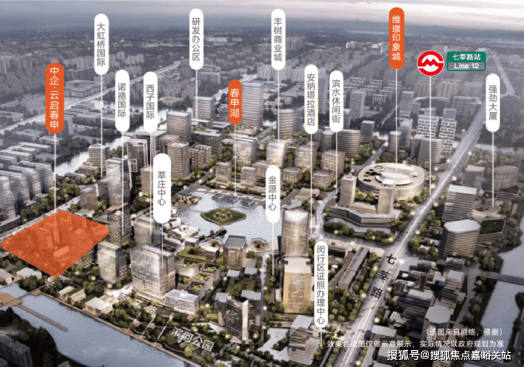 商业方面:「中企云启春申」直线距离12号线七莘路站地铁上盖综合体维璟印象城仅约600米。