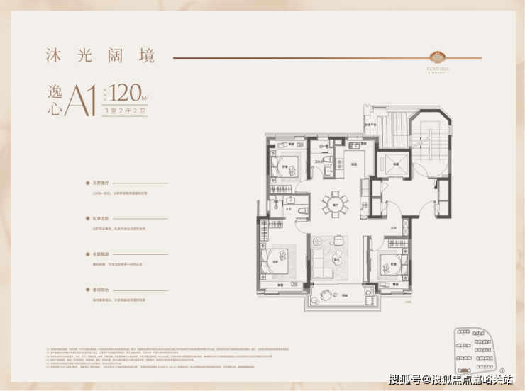 建面约 120㎡三房两厅两卫 :板块内稀缺小面积内中环三房,纯南北通透,三开间朝南,南向面宽达 10.2 米,全景飘窗设计,采光充足;U 型厨房操作便捷,空间利用率拉满;主卧套房带独立卫浴与步入式衣帽间,私密性与舒适度兼具;总价 1070-1360 万,是年轻精英入主内中环的高性价比优选。