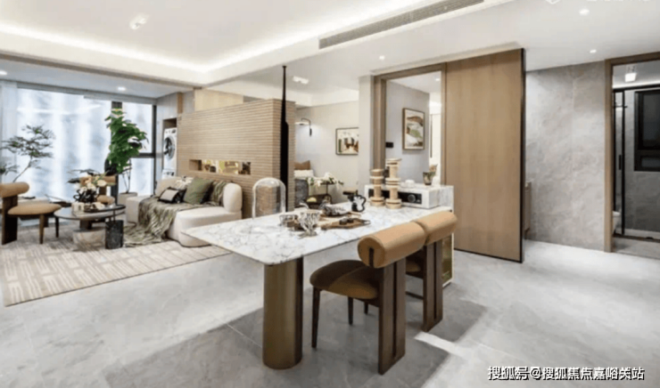 移步至酒店式的归家前厅,一方闲情逸趣的精神场域,会让你瞬间迸发出未来生活的美好想象,商务会客、接待好友、邻里闲谈,美好的生活皆可在此上演。