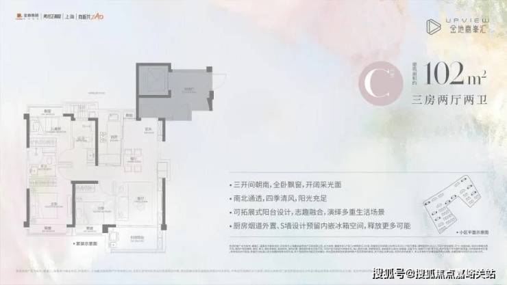 以及我们的 建面约102㎡(C户型)三房两厅两卫,不仅保留了其小户型所有的优势,更增强了空间感和舒适度!