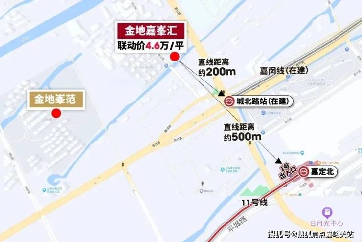 项目与嘉闵线(在建)城北路站直线距离约200米,与11号线嘉定北站直线距离约500米,皆在步行可达的范围内。