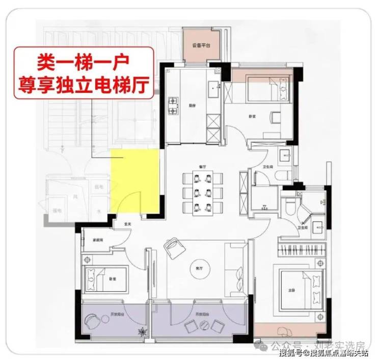 而时代雲境的类一梯一户设计,为每户预留了独立的电梯厅。