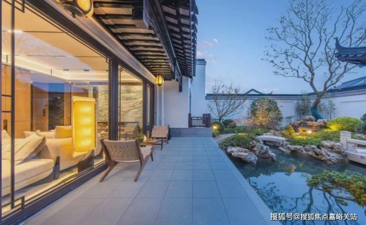 大宅后花园,采用了 围合式的建筑结构,有 泗水连廊、有 金鱼戏水,彰显中式大宅的典雅大气。