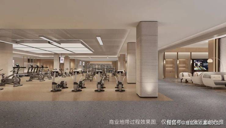 商业地带内部,设有社交、商务、运动、志趣、亲子5大主题,涵盖精致私宴、恒温泳池、健身房、儿童培训、咖啡休闲、多功能厅等。