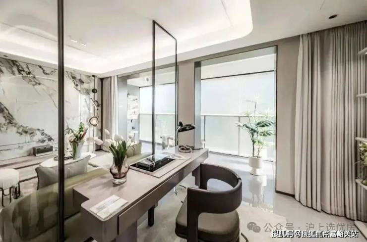 南向次卧外接阔景阳台 ,这套样板间是与餐客厅联动使用的,未来业主也可以根据自身需求,打造成书房、影音室、电竞房、儿童房等各类生活场景满足不同家庭的生活需求!