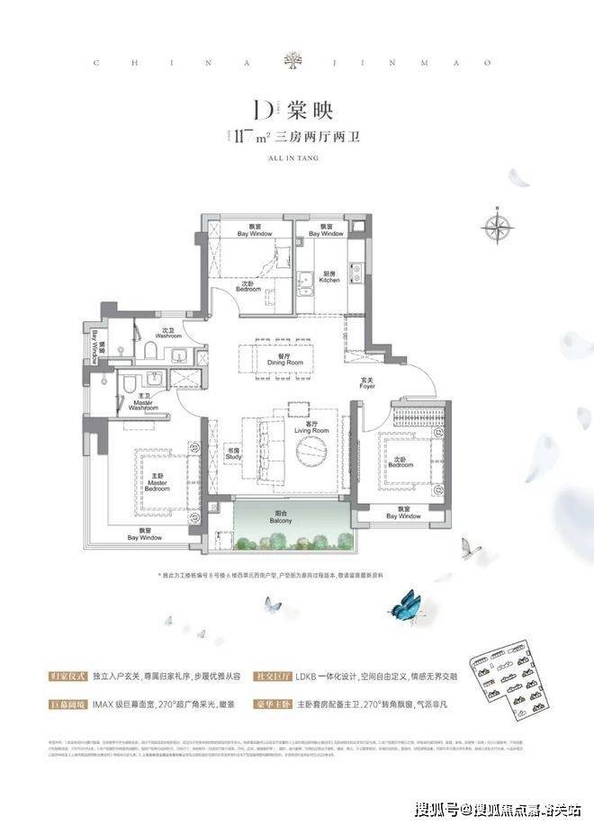 金茂棠前售楼处电话☎:400-856-9058☑️☑️建面约117㎡3房2厅2卫,做到了3+1开间朝南+5个飘窗+主卧套房设计+270°转角飘窗,所有的尺度都有进一步提升。金茂棠前售楼处电话☎:400-856-9058☑️☑️