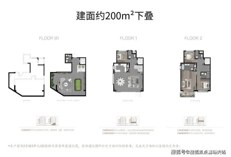 首先,项目清一色的都是四层的上下叠配置,垂直空间内只有两户业主,私密性、静谧性都更加出色。其次,来看户型: 在所有叠墅户型中,下叠往往是更具“墅感”的,我们以主推的建面约200㎡下叠产品为例,来解析一下这个产品: