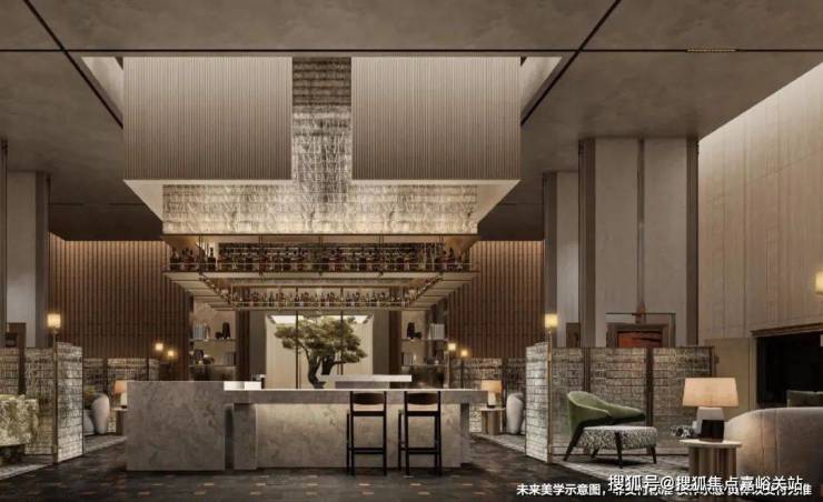 一进院:社区门口的 6米宽瀑布景墙+落石+大乔组合,构筑起一道 天然噪音屏障,进入瞬时隔离城市喧嚣!二进院:经过廊道,现代 东方照明系统与景墙的组合,在光影变幻间呈现“移步换景”的归家仪式感!三进院:来到社区中央, 18米宽的中心景观轴,搭配景观水池与疏密乔木,形成极简却又不失典雅气质的主景观花园!四进院:绿荫环绕的林下空间,为邻里交流提供惬意轻松的绿意场所!五进院:密植小乔合围的私密通道,配合定制石材院门,完成从公共到私域的过渡!1000平下沉式会所,安排了诸如健身房,私宴厅,四点半学堂,洽谈区等诸多功能,方便业主在这里安排社交活动。