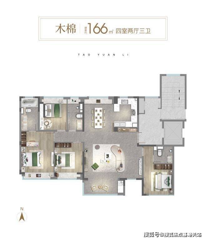 南地块168套,户型为: 建筑面积约106㎡、166㎡