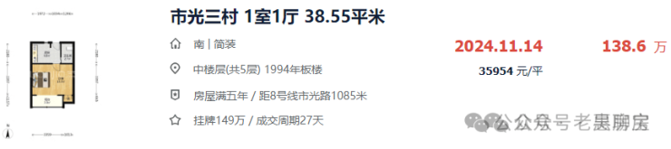 去年11月,小区同面积段房源,约138.6万成交,折合单价约35954元/㎡。