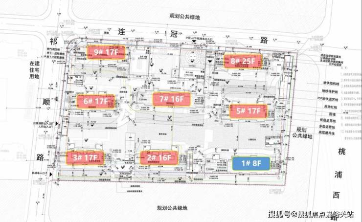 根据设计方案, 项目拟建4幢17楼、2幢16楼、1幢25楼产品,另有1幢8楼保障房。从设计方案来看,2#、3#、5#、6#、7#均有入户门厅设计,整个小区局部两层地库,位于6#、3#、2#楼下。社区首层架空,带物业配套用房。