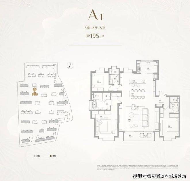建面约195㎡3房是天安1号首次入市的产品,也是整个项目最高舒适度的产品。它位于社区的中央,楼下就是中央景观轴,视野、采光都相当出众。超大尺度感的客餐厅,东西双厨的设计,更符合当代城市菁英的需求。三套房的设计,每一个卧室都是普通豪宅主卧的尺度感和标准。没有短板的户型,真正的顶奢产品。