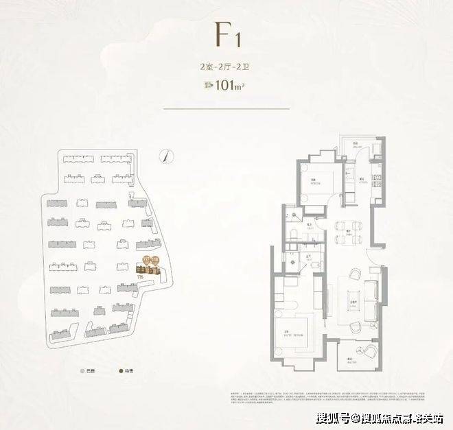 建面约101㎡2房2卫,LDK一体化设计;主卧套房配置步入式衣帽间+独立卫浴;南北双阳台系统,实现270°采光通风。