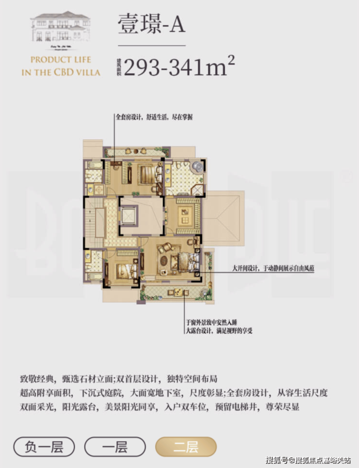 得益于“品”字形布局,壹品别墅每户的私家占地面积更大,更方正,且所有房间都能接触到阳光,欣赏到庭院美景。宽景、全南套房、双花园,真正体现了别墅的空间优越性, 近20米超大横向面宽 .