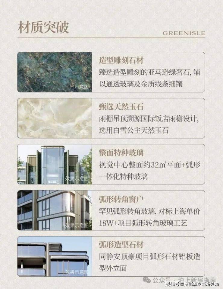 立面上,项目不惜成本,甄选巴西进口亚马逊绿奢石,这种TOP级天然石材,以深邃的纹理与温润的质感,在现代立面上复刻了老绿房子的灵魂,却更显当代奢华气度。