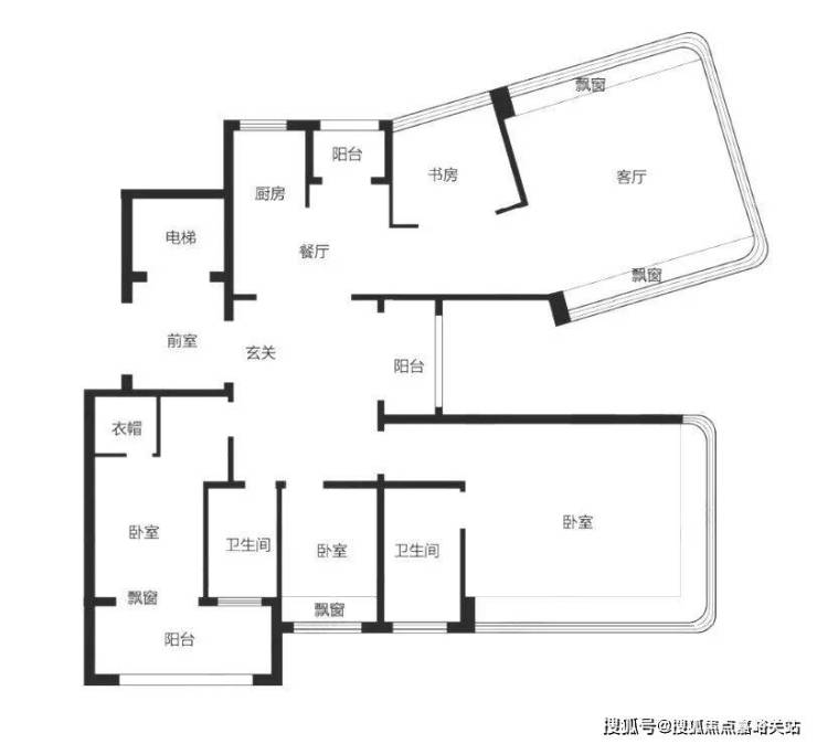 户型配备多处飘窗和阳台,飘窗可引入柔和光线,阳台则增强了采光面与通风效果,让室内空间更显明亮、舒适。