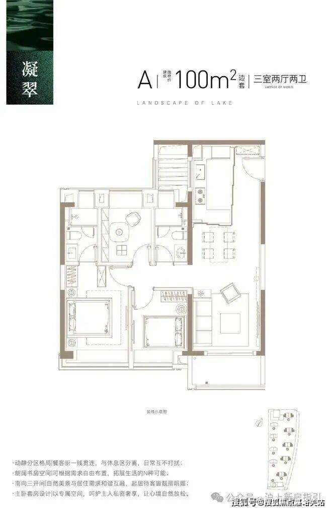 映翠府售楼处电话☎:400-856-9058☑️☑️做到了三开间朝南+主卧套房设计+动静分离+全卧室带飘窗,延伸了使用面积,室内采光、通透性都非常不错。