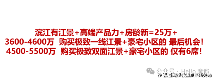 • 总价区间:总价2700-5500万,西边套单价14-27万,东边套10楼看江单价18-19万