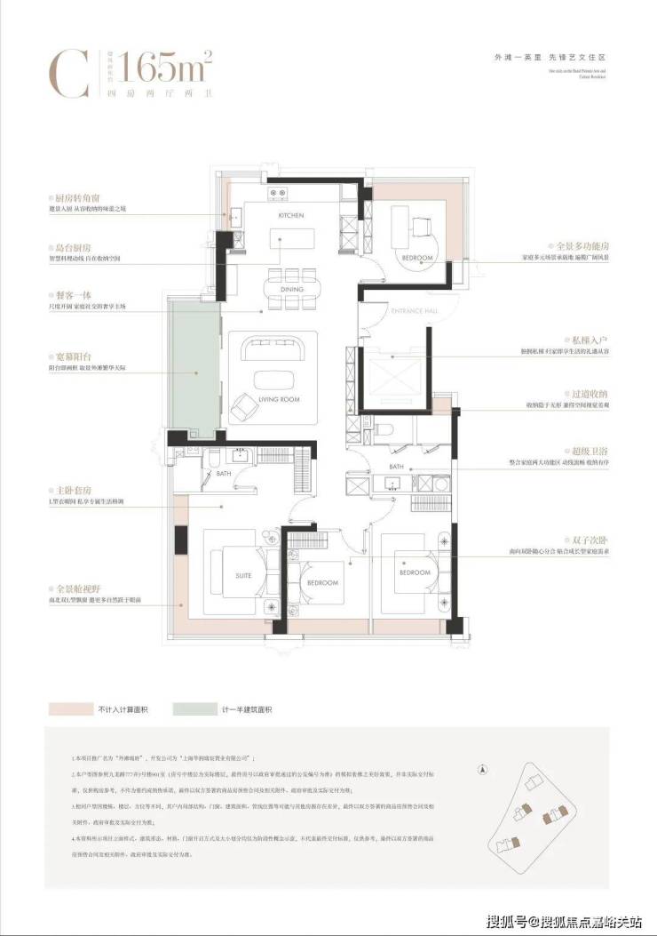 大横厅尺度感奢阔,尊享私梯入户,隐私性满分!三间卧室朝南设计的平权户型,老人、小孩均可享受南向采光;厨房转角窗、主卧套房、北向书房均配置270度转角飘窗,景观视野相当不错!次卫四分离设计,相当人性化~