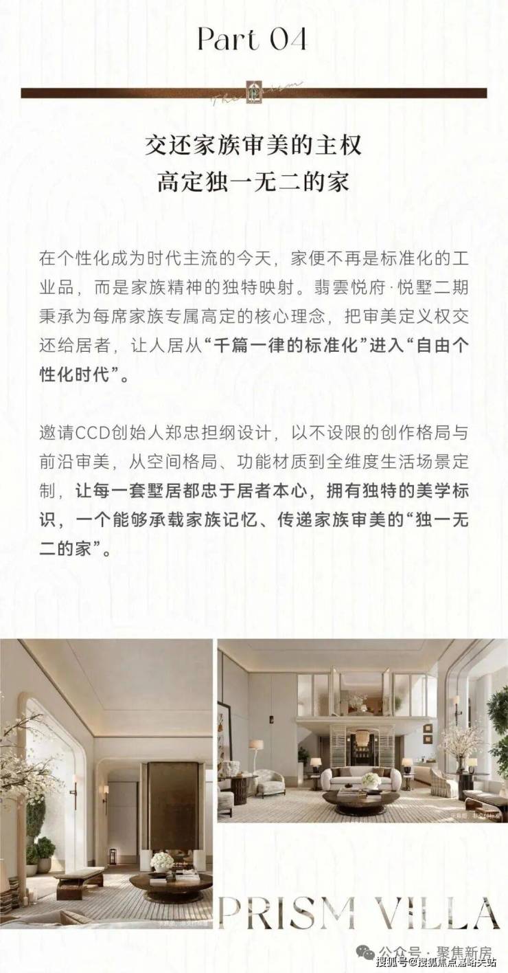 翡云悦府·悦墅II期联袂国际CCD大师设计团队,以不设限的创作格局与审美,从空间格局、功能材质到全维度生活场景,以个性化定制、科技定制让空间格局随生活方式而变,审美风格随个人偏好而变,让家真正成为居住者精神世界的外化。