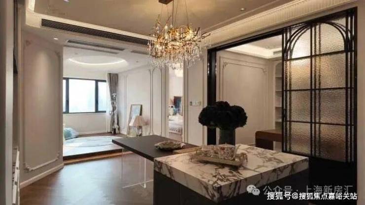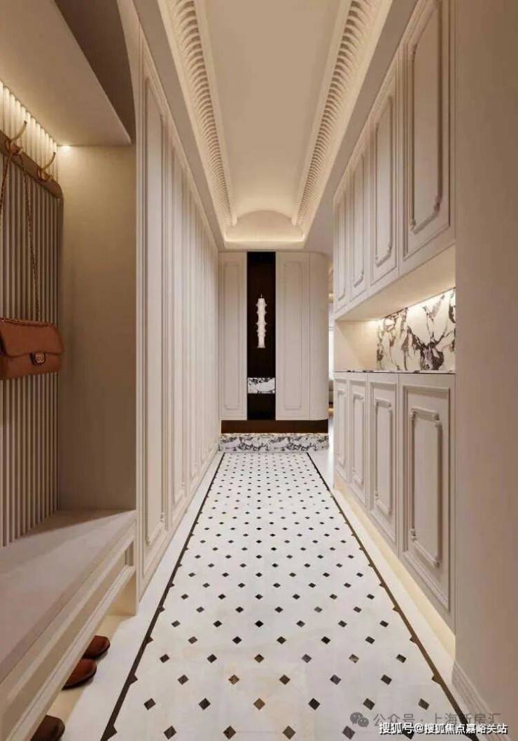 建筑面积约 132.52 ㎡ 的户型,三房两厅一卫户型法国浪漫元素与中式相融合,彰显贵族品味和当代极简轻奢风玄关之处,处理和空间的运用使得一进门回家就仪式感拉满打造尊贵轻奢格调,在细节上做到极致