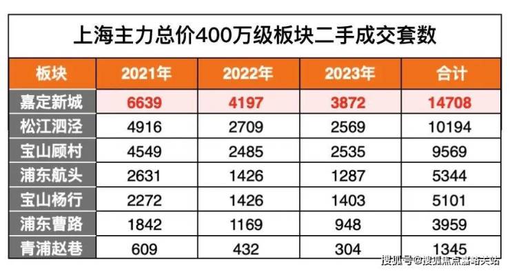 据数据统计,2022年嘉定新城有466套新房成交价在400万级,但2023年就只有204套新房总价在400万级。