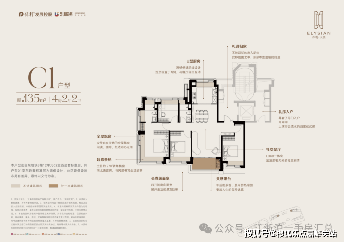 建面约135m²4放回行,室内格局是经典的飞机户型+南北通透LDKB一体化设计。是 对于纯改善需求的量身定制,做了更尊奢的开间尺度。