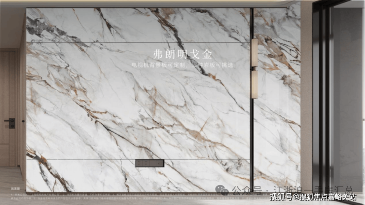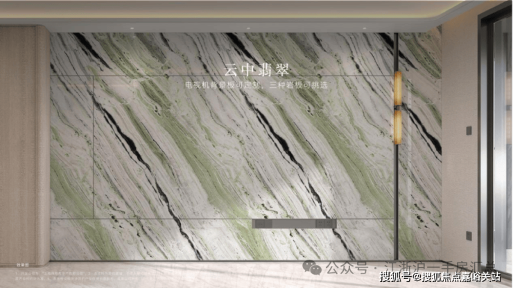 充分考虑业主的个性化需求,在电视背景板提供了 新潘多拉、云中翡翠、弗朗明戈金三种结晶釉面岩板选择,成本更高,施工难度也更大。