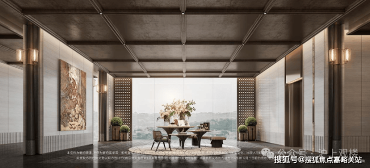 双轴线的设计,充分拓宽了视野面与观赏点位,环形回廊、精神游廊与下沉庭院通过立体景观平台相融,又创造出隔岸听泉的诗意场景。在会所、在架空层泛会所、在归家路上,每个重要生活触点,业主都能拥享独特景观和欣赏视野。