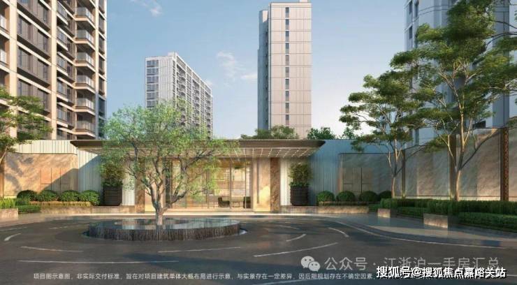 还能在归家的动线上体会到不同的景观节点:境隐门开(主入口空间)、悬廊叠瀑(水岸会客厅)、绿野拾趣(儿童乐园)、轻舞晓影(乐享氧吧)、樾下茶庭(宅前花园)、花香漫语(宅前会客花园)、轻氧花园(全龄活动区)。