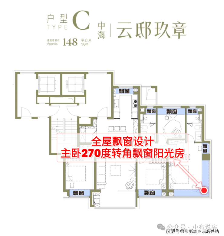 亮点④全屋飘窗设计,主卧270度转角飘窗阳光房!