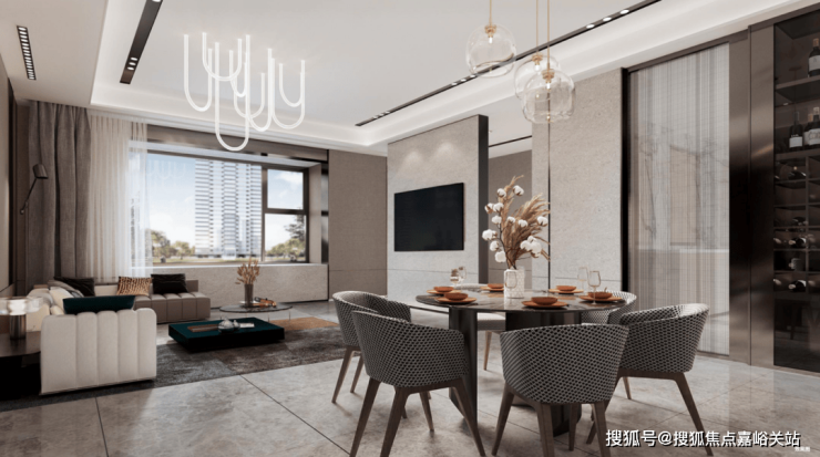 项目由3栋19-23层住宅、1栋17层办公及精品商业组成。整体建筑采用银白色铝板及深色硬朗石材搭配玻璃立面,兼具现代典雅与时尚简约。