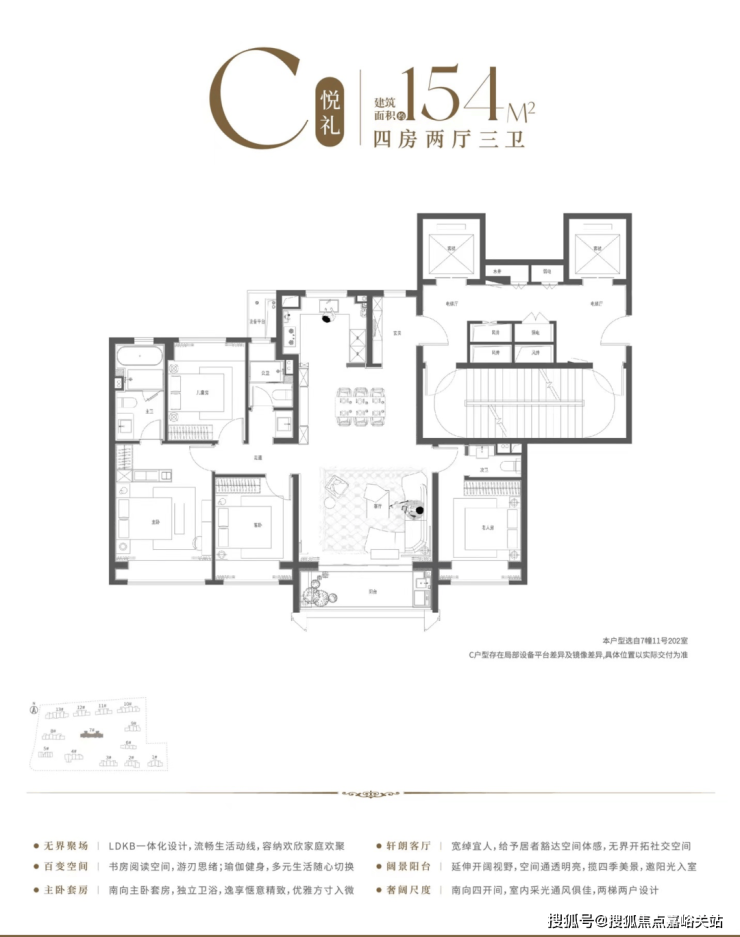 全景面宽+无界通厅+高附加值+收纳天花板, 130㎡的面积直逼140㎡的尺度感!