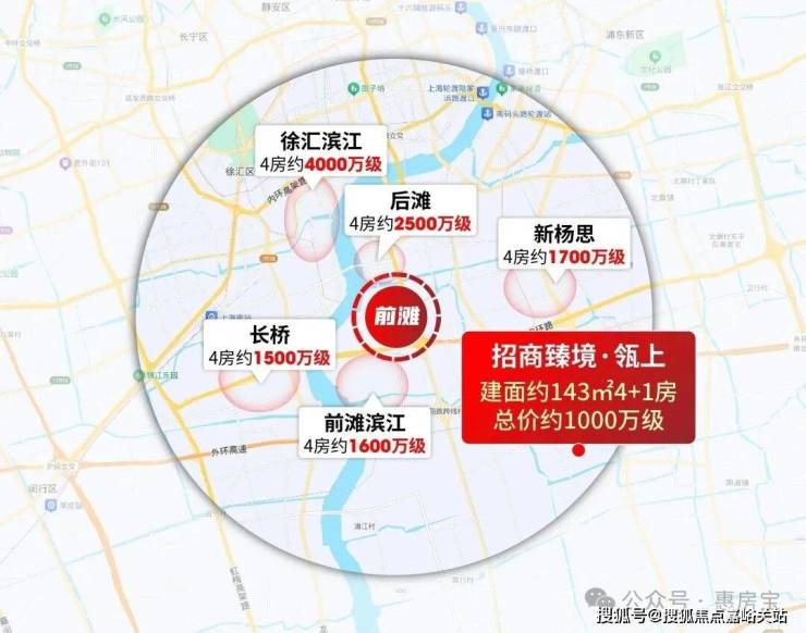 以前滩为中心,直线约5km范围内的新房,4房总价起码约1700万起。
