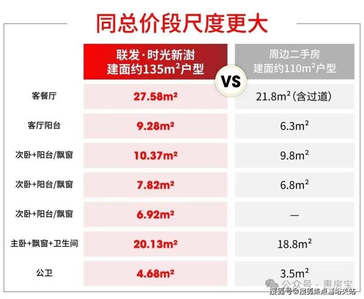 从目前的价格爆料来看,建面约135m²户型的预估总价与周边二手次新107-108m²的挂牌价相近,但实际居住感受和空间,截然不同!
