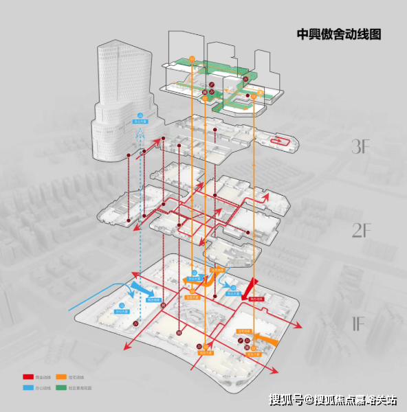 虽然商业和住宅垂直融合,但住宅动线和商业动线是永不相交的“双轨制”模式。