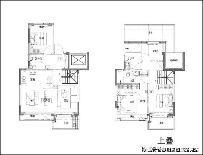 高层除140㎡户型为两梯两户以外,其余全部为两梯四户,中间套带连廊!