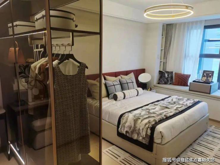 另外,一般百平米主卫淋浴房都是钻石型的,但项目是“一字型”的。“一字型”相比“钻石型”,洗澡空间更大,哪怕带着小朋友也不用挤得“转圈圈”,舒适度提高了不止一点点。