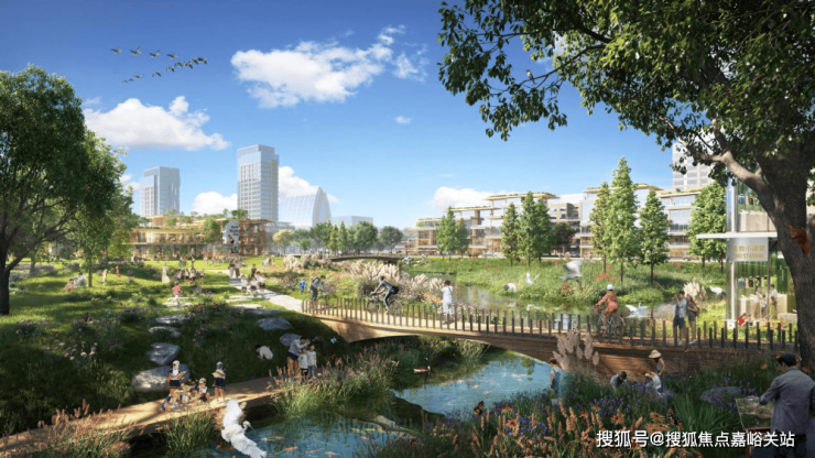 中央景观轴贯穿南北,搭配下沉庭院、休闲草坪、健身跑道,打造全龄活动空间。同时,项目将浦南运河公园绿带纳入社区景观,形成 “内外双园” 格局。推窗见绿意,出门入公园,在繁华都市中享受自然静谧。