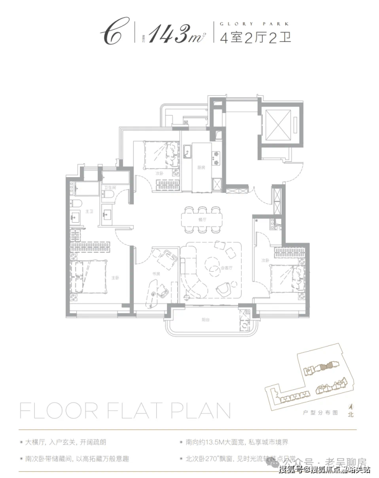 以已经开放样板间的建面约143㎡户型为例: