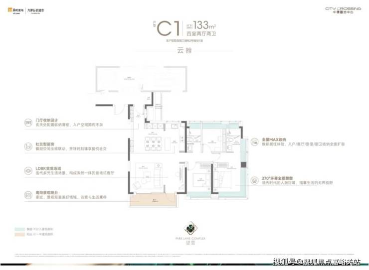 133㎡的四房产品是项目的明星户型,板块内以及整个中环难得的改善型作品。