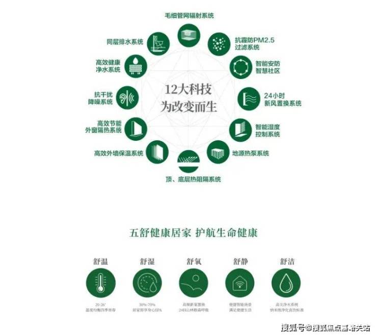以十二大绿金科技构筑「五舒」健康空间,通过衡温、衡湿、衡氧、衡洁、衡静五大维度,打造全年舒适的家居环境。这一系统以上海地源热泵为核心能源,搭配毛细管网辐射控温和24小时新风置换,实现室内温度恒定在约20-26℃,湿度保持在约30%-70%。