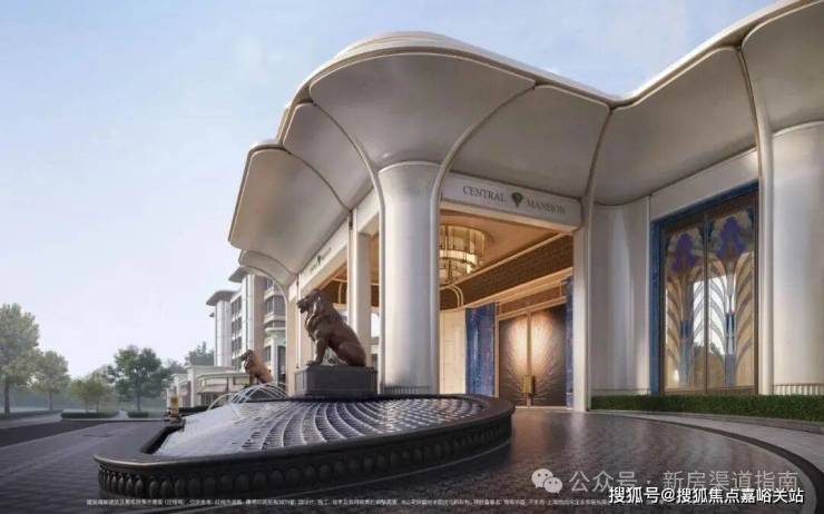 玉兰门庭 」摩登飘逸,环抱式落客前场,大师定制 非遗掐丝珐琅门钹,流转温润光华,敬呈归家尊崇礼序,自此启幕生活的华贵序章。