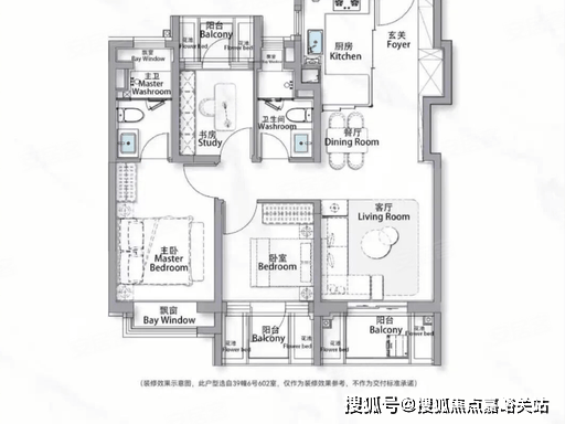 格局:南北通透、双卫设计、三阳台、主卧套房、独立玄关