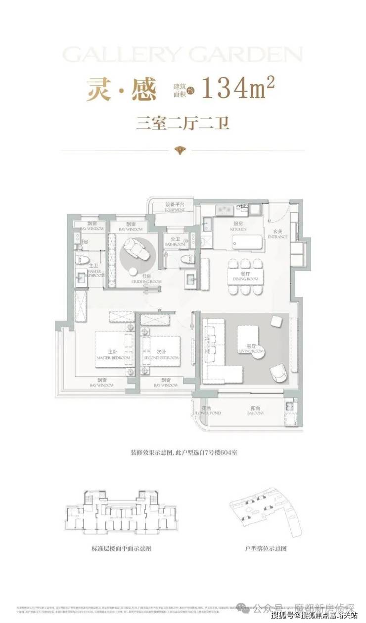 建面约134㎡3房2厅2卫, 主力总价约1500-1700万 ,户型设计在上一个户型的基础上将各功能间尺度升级的同时,也做了一些更人性化的迭新。