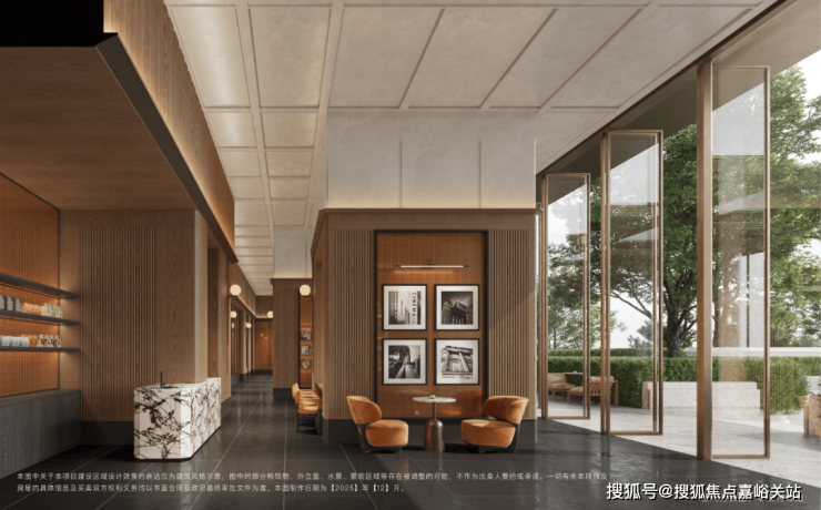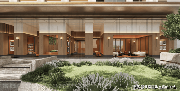 项目另一大亮点在于东侧主入口的设计。不同于常规门头,项目采用四进式布局:从标志性的“玖系”隐奢门头启程,经过仪式感十足的公馆草坪,再到营造社交氛围的聚场空间,层层递进,步步皆景。