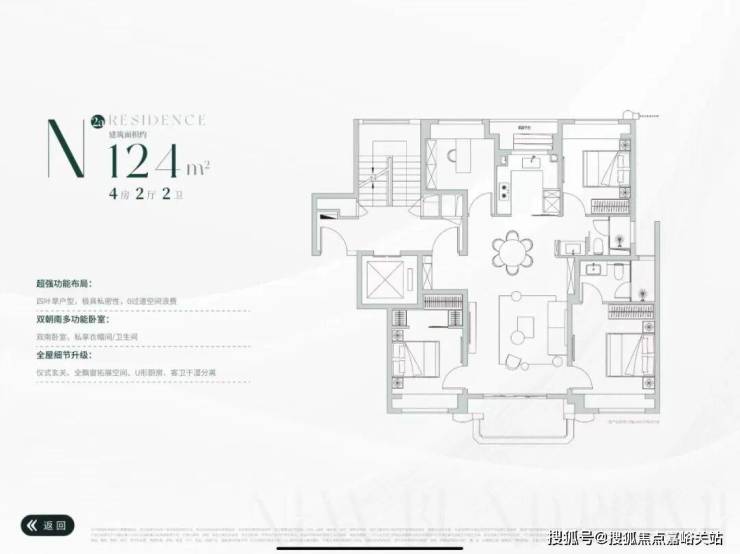 2#总高12F-13F,首层部分为社区配套+沿街商业+架空层,户型为建面约189-199㎡4房2厅3卫,两梯两户,层高约3.15米;