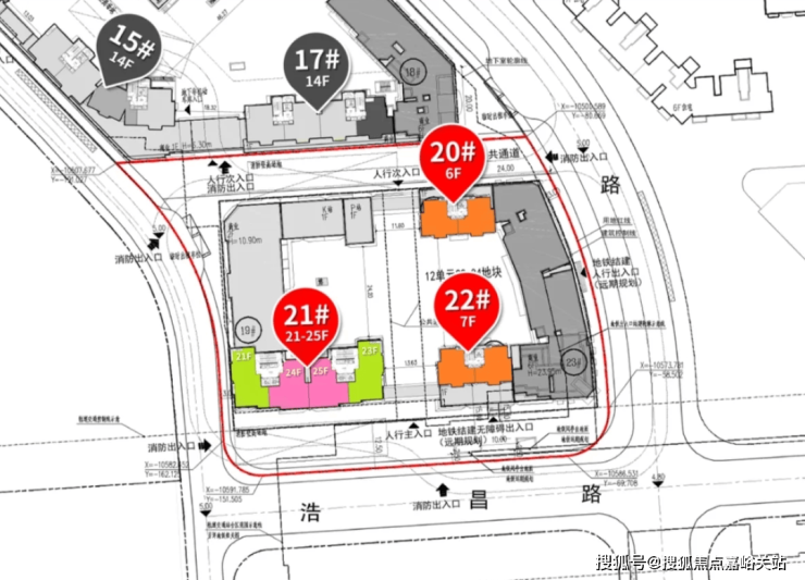 20#、22#总高6-7F,首层为商业,户型为建面约89㎡3房2厅2卫,一梯两户,层高约3.05米;